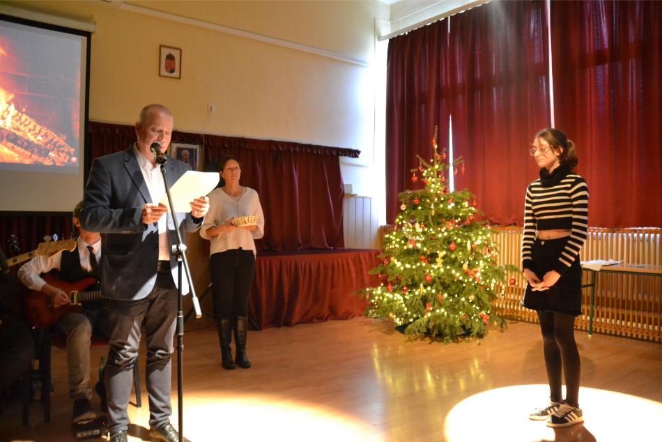 Iskolánk kapui idénre bezártak, diákjaink által jól megérdemelt mézeskalács szivecskéinket átadtuk, iskolánk zeneműhelye pedig karácsonyi hangulatba rázta gimnáziumunkat.