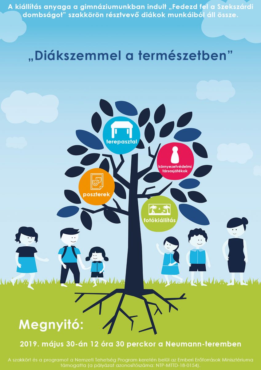 A kiállítás anyaga a gimnáziumunkban indult „Fedezd fel a Szekszárdi dombságot” szakkörön résztvevő diákok munkáiból áll össze. A szakkört és a programot a Nemzeti Tehetség Program keretén belül az Emberi Erőforrások Minisztériuma támogatta (a pályázat azonosítószáma: NTP-MTTD-18-0154).