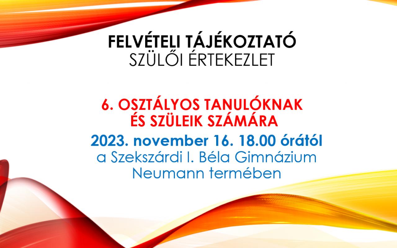 Felvételi Tájékoztató Szülői értekezlet